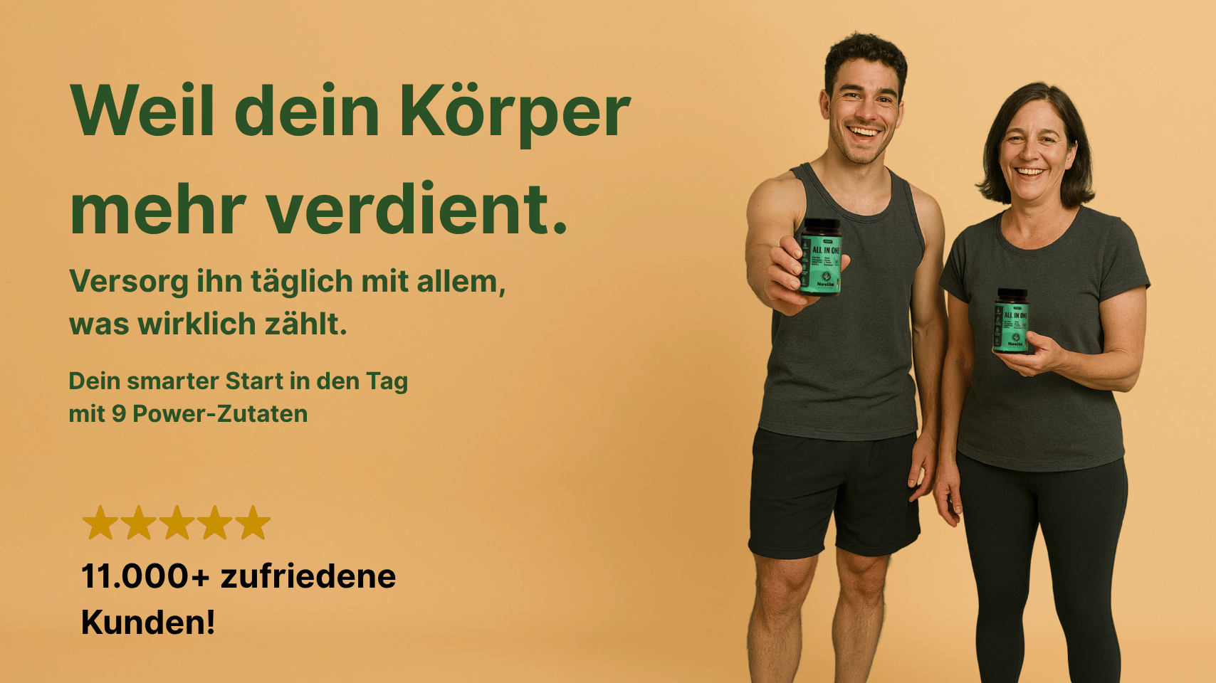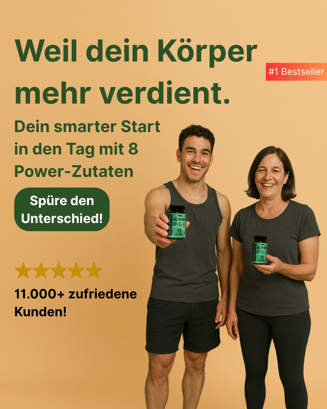 Unser All-in-One besteht aus pflanzlichen Inhaltsstoffen, die traditionell verwendet werden und in der Regel als sehr gut verträglich gelten. Dennoch können – wie bei allen Nahrungsergänzungsmitteln – individuelle Reaktionen oder Unverträglichkeiten auftreten. Auch pflanzliche Stoffe haben eine Wirkung, und wo Wirkung ist, kann es (selten) auch Nebenwirkungen geben.